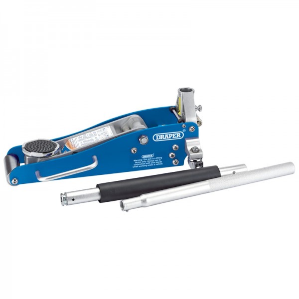Low profile professional jack ideal for sports and custom vehicles with a reduced clearance height. Powerful single piston ’ quick-lift’ feature. Heavy-duty Aluminium chassis enhances the strength and keeps the weight to a minimum. Large saddle aids positioning, integrated rubber saddle pad provides added protection to the vehicle. Supplied with a two piece handle and EVA foam bumper to protect vehicle panels.