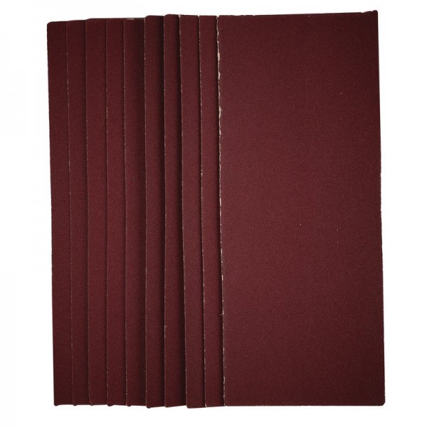 This pack of 1/2 sanding sheets (115 x 280mm) are made from premium quality aluminium oxide that is resin bonded to provide improved grain adhesion, anti-static qualities and long-lasting performance. The sheets are pre-cut to fit 1/2 sanders with clamping function (115 x 230mm). The heavy-duty E-Weight backing paper makes the sanding sheet more durable – able to withstand the toughest jobs. Ideal for sanding and finishing wood, metal, aluminium alloy, painted surfaces, plastic and fillers. Compatible with most 1/2 sanders including Stock No. 57941.