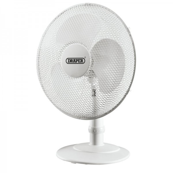 400mm three speed desk fan. The 90 degree oscillating tilting 3-blade head, circulates the air providing effective cooling for the area required. Fitted with front and rear finger guards and an extra wide base.