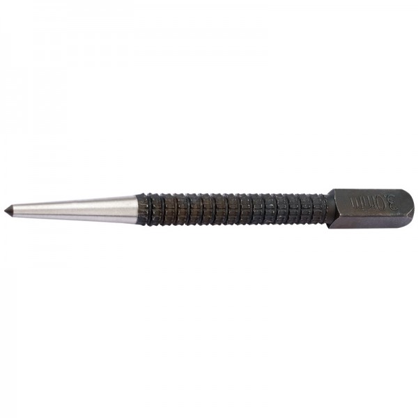 Square section striking head with knurled body and polished ends. Manufactured from carbon steel hardened and tempered. Display packed.