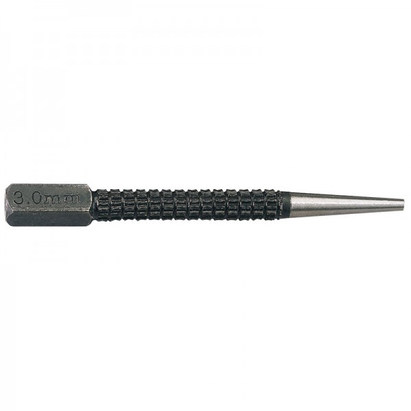 Square section striking head with knurled body and polished end. Manufactured from carbon steel hardened and tempered. Display packed.