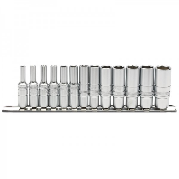 Deep Metric Socket Set on a Metal Rail, 1/4” Sq. Dr. (13 Piece)
