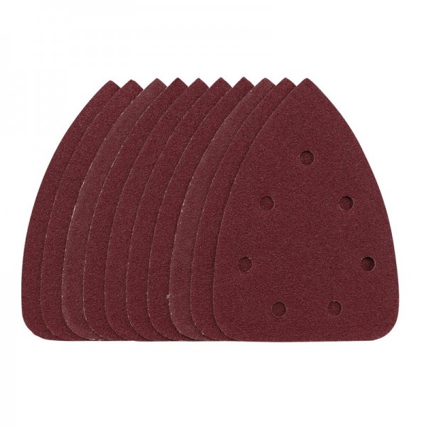 This pack of 140mm detail sanding sheets are made from premium quality aluminium oxide that is resin bonded to provide improved grain adhesion, anti-static qualities and long-lasting performance. The heavy-duty E-Weight backing paper makes the sanding sheet more durable – able to withstand the toughest jobs. The hook and loop backing offers decent adhesion to facilitate the fast changing of sanding sheets. The seven pre-punched 8mm holes improve dust extraction. Ideal for sanding and finishing wood, metal, aluminium alloy, painted surfaces, plastic and fillers. Compatible with most detail sanders with 140mm hook and loop backing pads including Stock No. 00608.