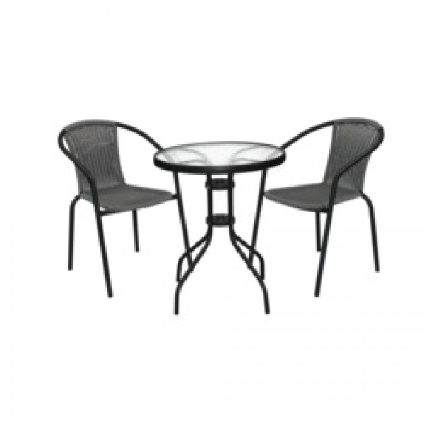 Table 60cm diameter x 70cm high. Chairs 51 x 56.5 x 77.5cm