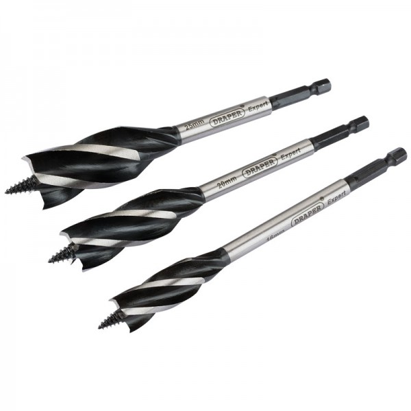 Expert Quality, revolutionary auger bits, manufactured with four razor sharp carbon steel cutting edges. Their unique design helps the bits pull themselves through the material when drilling, making tasks effortless whilst delivering perfect holes every time. All sizes have a strong 6.35mm hex shank. Display packed.