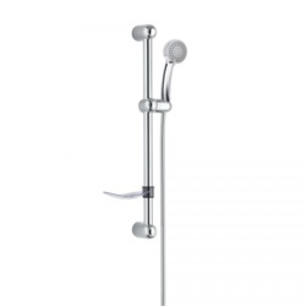 An easy-fit shower kit consisting of hose, shower head, riser rail and soap dish