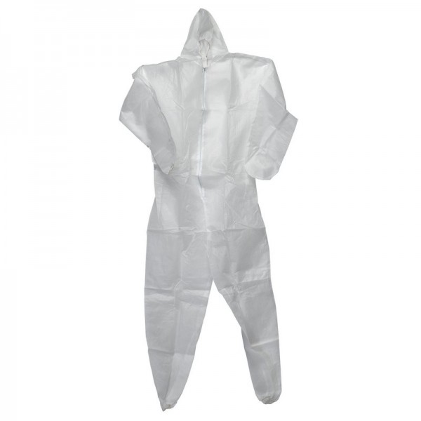 Disposable coverall with elasticated hood, full-length front zip and elasticated wrists and ankles. Lightweight and breathable for reduced heat stress and comfort. Offers protection against hazardous dusts and liquid splashes.
