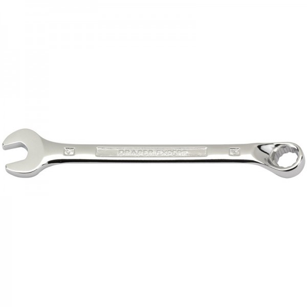 Expert Quality, with Draper Expert HI-TORQ® deep offset ring end cranked at 15°. Open end set at 15°. Long pattern forged from chrome vanadium steel, hardened, tempered, chrome plated and fully polished throughout.