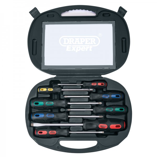 Expert Quality, screwdrivers with hardened SVCM satin chrome plated blades and sand blasted tips. The handle is manufactured from vulcanized ’soft grip’ polymer which is colour coded for easy recognition. Packed in blow mould case with see-through lid. Display packed.