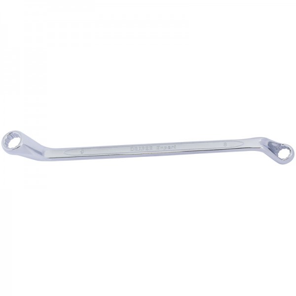 Expert Quality, with Draper Expert HI-TORQ® ring ends cranked at 15°, except Stock Nos. 55703 to 55708 which are bi - hexagon. Long pattern forged from chrome vanadium steel, hardened, tempered, chrome plated and fully polished throughout. on header card; 6 x 7 - 20 x 22mm. Polybag with barcode label; 21 x 23 - 55 x 60mm.