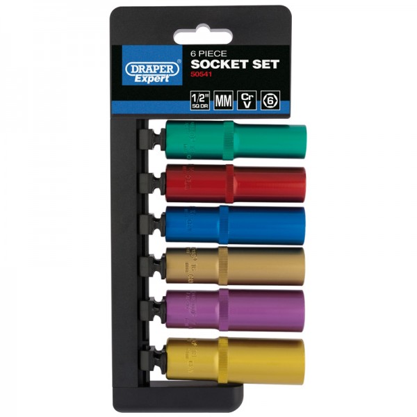 Metric Coloured Deep Socket Set, 1/2” Sq. Dr. (6 Piece)