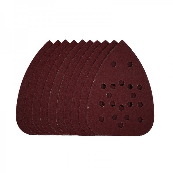 This pack of 140mm detail sanding sheets are made from premium quality aluminium oxide that is resin bonded to provide improved grain adhesion, anti-static qualities and long-lasting performance. The heavy-duty E-Weight backing paper makes the sanding sheet more durable – able to withstand the toughest jobs. The hook and loop backing offers decent adhesion to facilitate the fast changing of sanding sheets. The 19 pre-punched 8mm holes improve dust extraction. Ideal for sanding and finishing wood, metal, aluminium alloy, painted surfaces, plastic and fillers. Compatible with most detail sanders with 140mm hook and loop backing pads including Stock No. 02063.