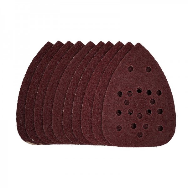 This pack of 140mm detail sanding sheets are made from premium quality aluminium oxide that is resin bonded to provide improved grain adhesion, anti-static qualities and long-lasting performance. The heavy-duty E-Weight backing paper makes the sanding sheet more durable – able to withstand the toughest jobs. The hook and loop backing offers decent adhesion to facilitate the fast changing of sanding sheets. The 19 pre-punched 8mm holes improve dust extraction. Ideal for sanding and finishing wood, metal, aluminium alloy, painted surfaces, plastic and fillers. Compatible with most detail sanders with 140mm hook and loop backing pads including Stock No. 02063.