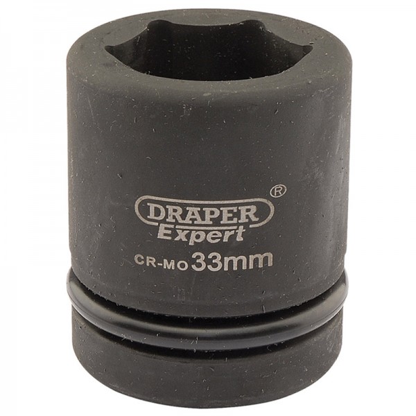Expert Quality, 6 point sockets forged from chrome molybdenum hardened, tempered and chemically blacked for corrosion protection. Supplied with pin and ring. These sockets are for use with air, electric or manual impact wrenches. Packed in polythene bag with barcode.