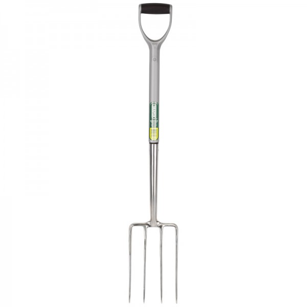 Soft handgrip, Y-dee handle attached to a steel cored, plastic coated shaft. Fitted with fully hardened, tempered and polished socket and tines. The overall length of 1050mm is beneficial for people 6ft tall and over, allowing a straighter back when digging, giving less strain and more leverage. Sold loose.