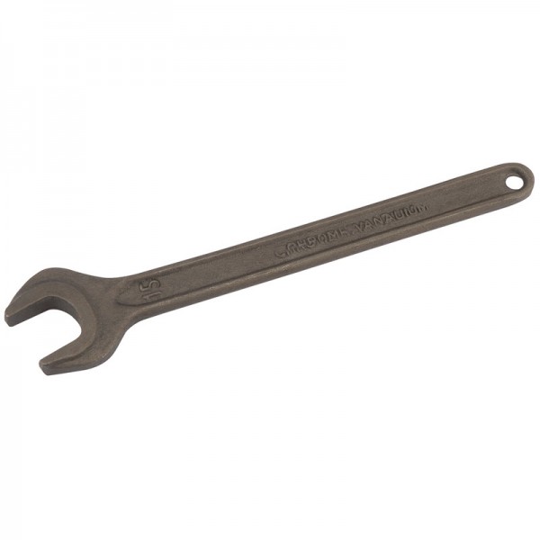 Forged from chrome vanadium steel with head angle set at 15°. Raised collar around jaw. Hardened, tempered and black phosphate finish. Especially suitable for use in areas where chemicals and chrome plate can give off poisonous fumes.
